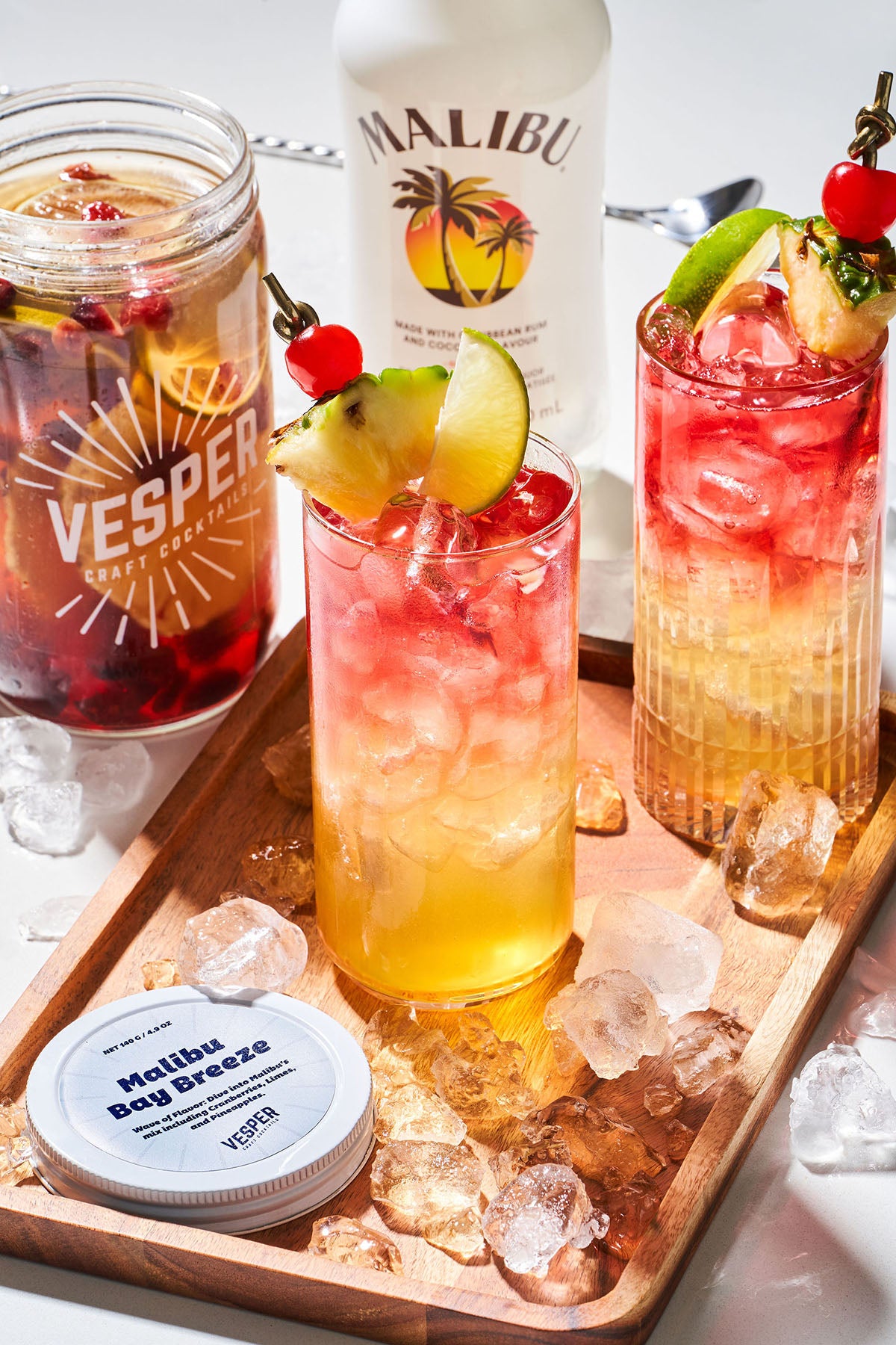 - Fill in your Malibu Bay Breeze Kit with Malibu brand coconut rum (or soda water for a non-alcoholic version).
