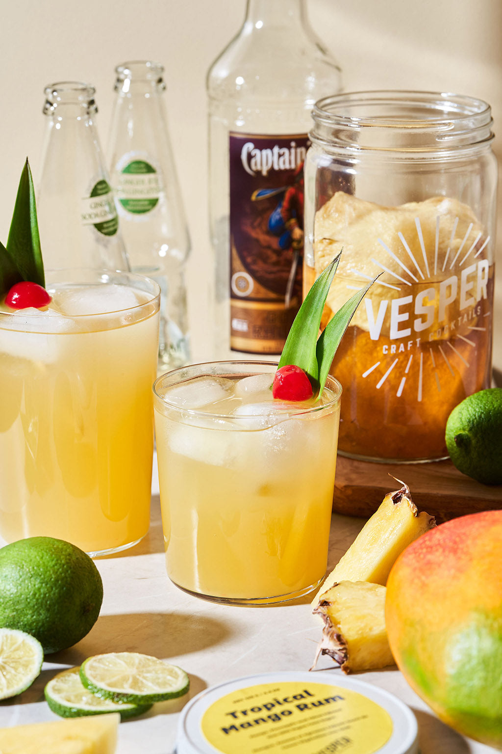 - Fill in Tropical Mango Rum Jar Kit with Golden Rum or Light Rum (or sparkling water for a non-alcoholic option).